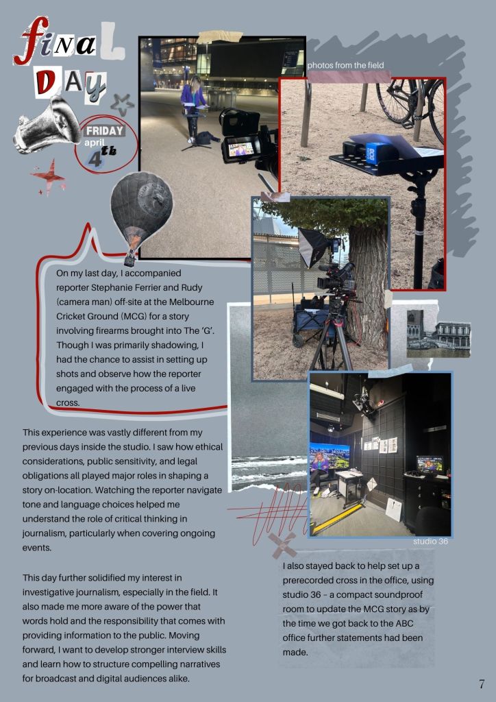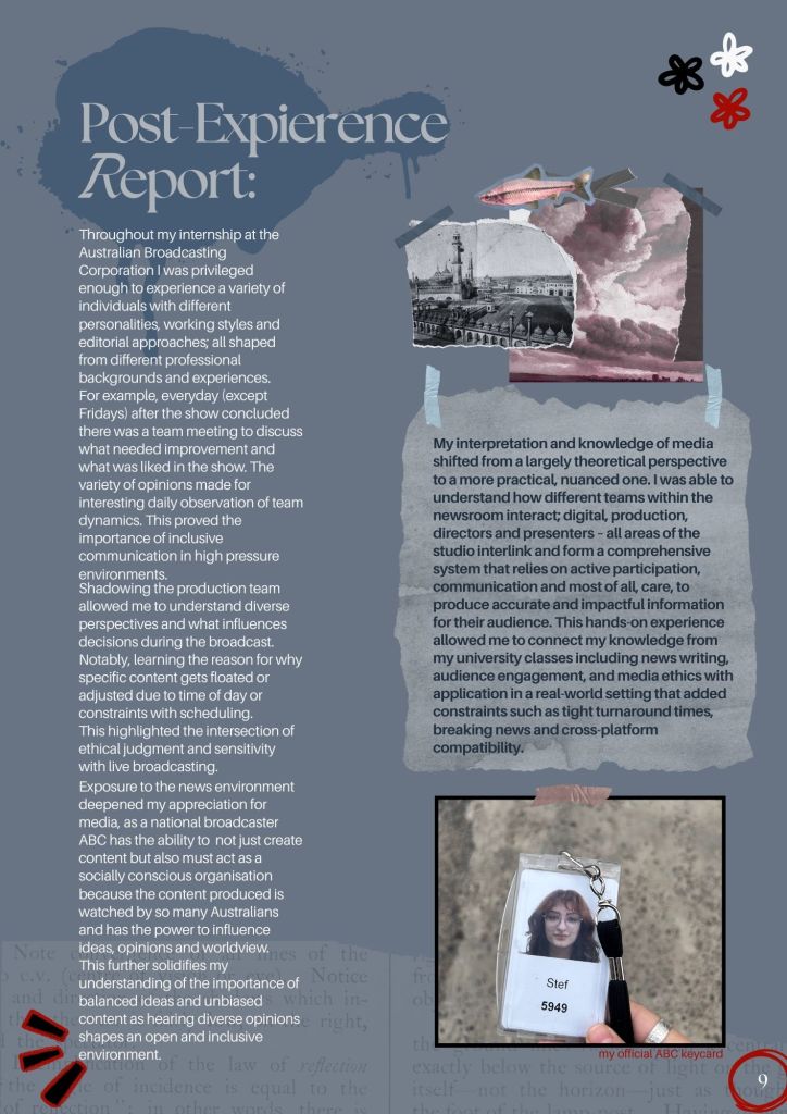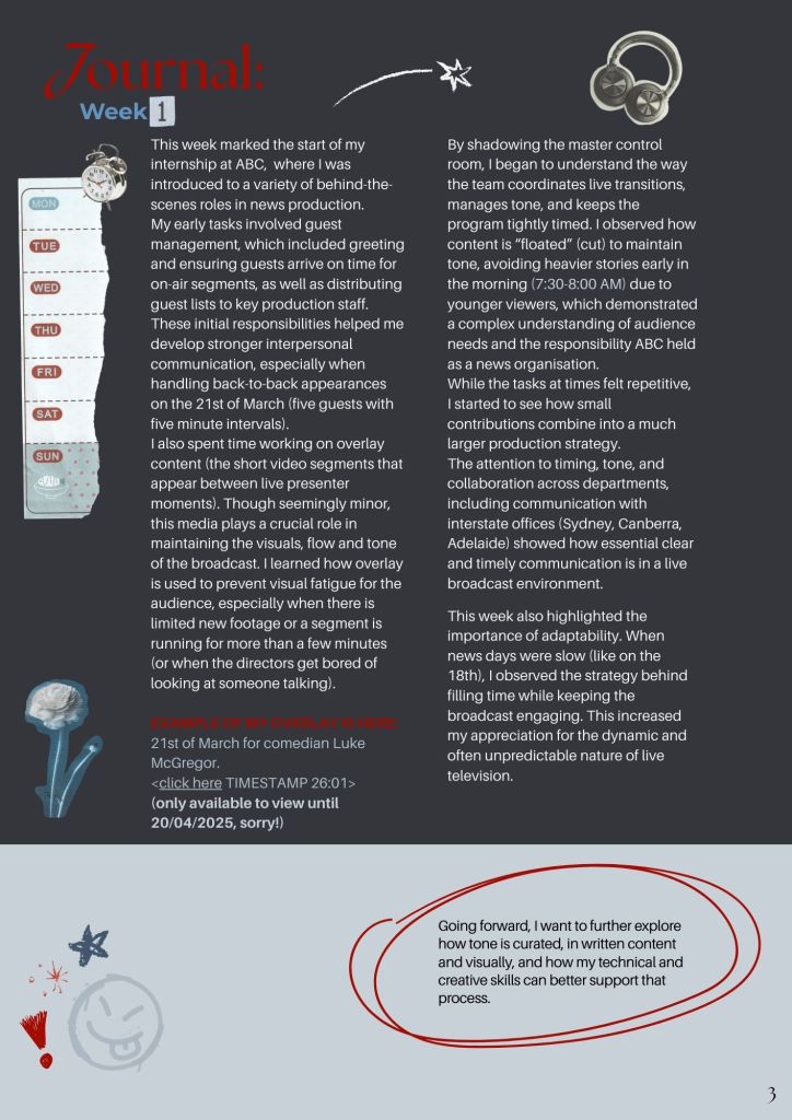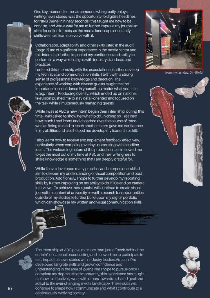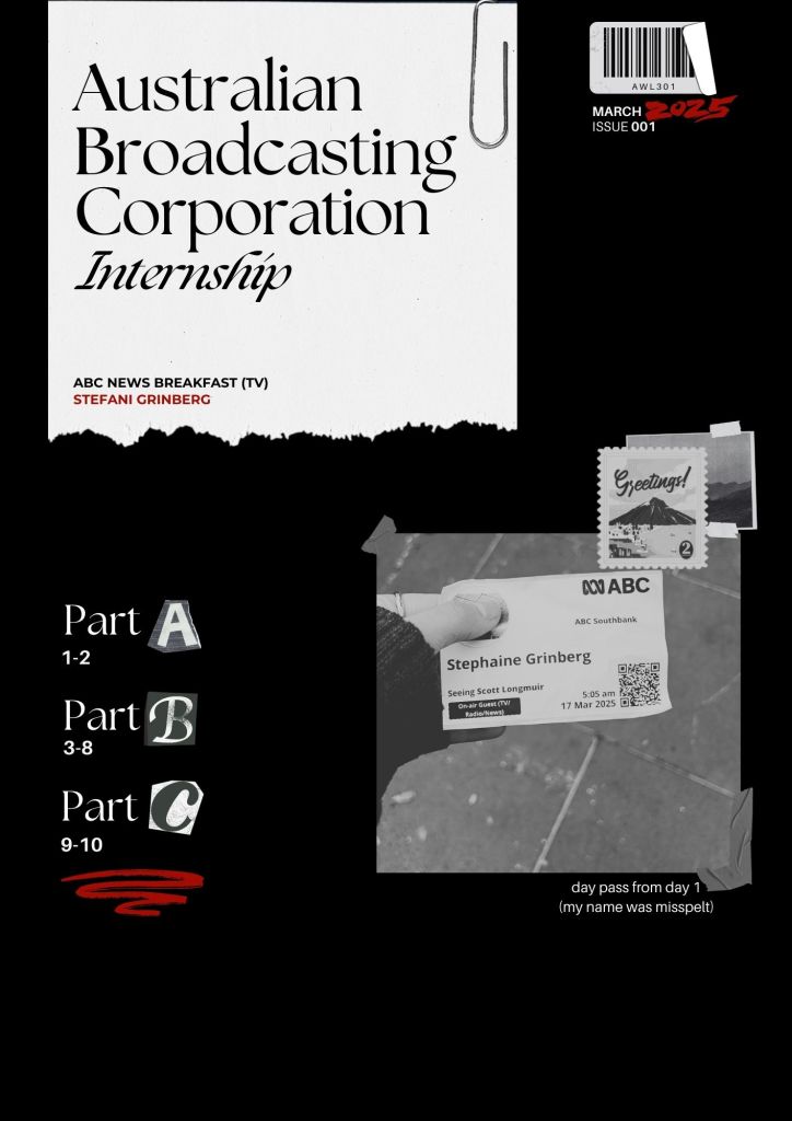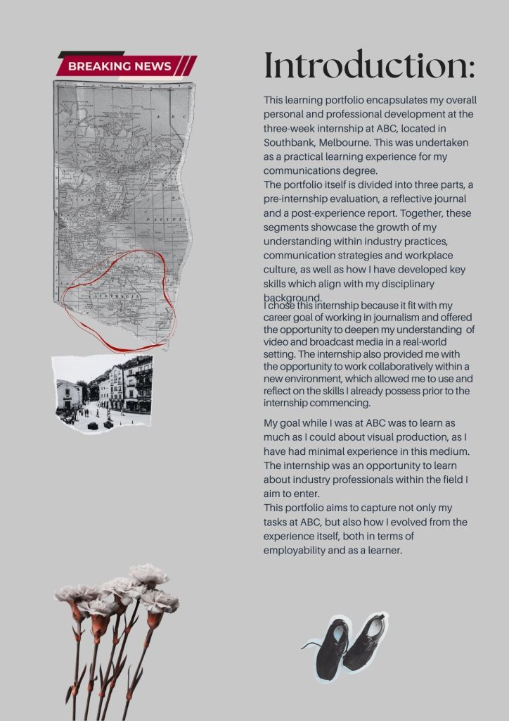 A comprehensive portfolio of my three week internship at ABC News Breakfast (TV) showcasing growth, outcomes and learning opportunities.